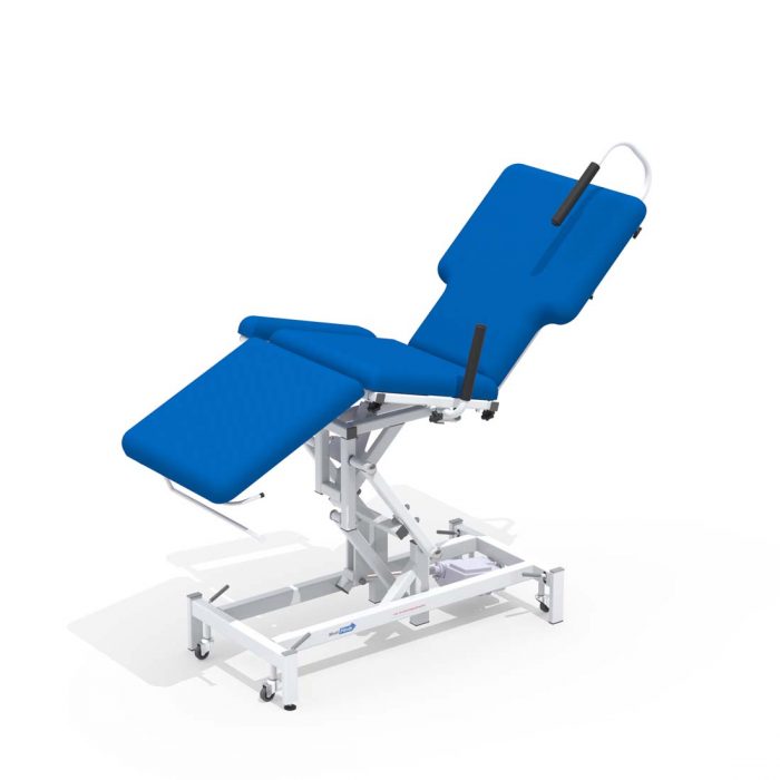 With a number of specific features to enable excellent positioning. The extended mid section provides comfortable seating, while the shaped backrest provides clinicians improved access to the patient. The padded support handles allow for patients to comfortably lie towards the edge of the couch with confidence. This couch is available with the option of a tilting seat section, enabling the couch to be moved into Trendelenburg position when necessary.