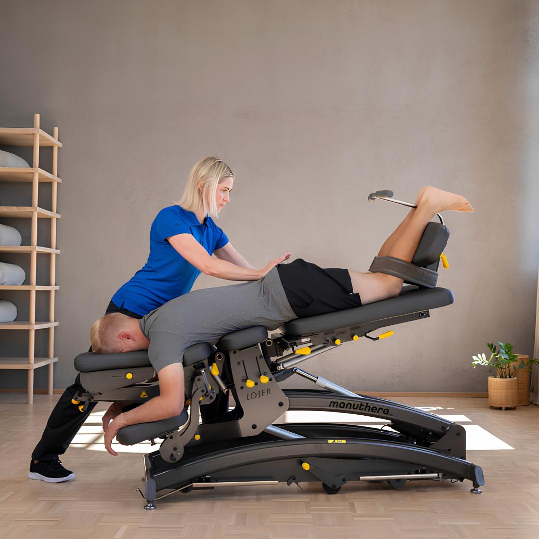 The Lojer Manuthera 242 is an advanced mobilisation and treatment table designed for physiotherapy, manual therapy and rehabilitation environments. Featuring dynamic 3D movement, electronic height and tilt adjustment, and precision control for cervical, thoracic and lumbar treatment, it enables highly effective mobilisation and decompression techniques. Built for performance, comfort and clinical accuracy, it is ideal for practices delivering advanced therapy.