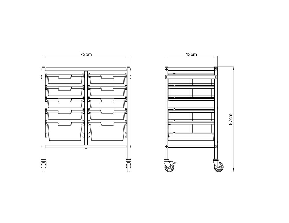 Featuring a double column A4 tray system, this medical storage trolley enables organised storage of medical supplies and equipment. Its modular design allows flexible configurations to suit a wide range of clinical applications.