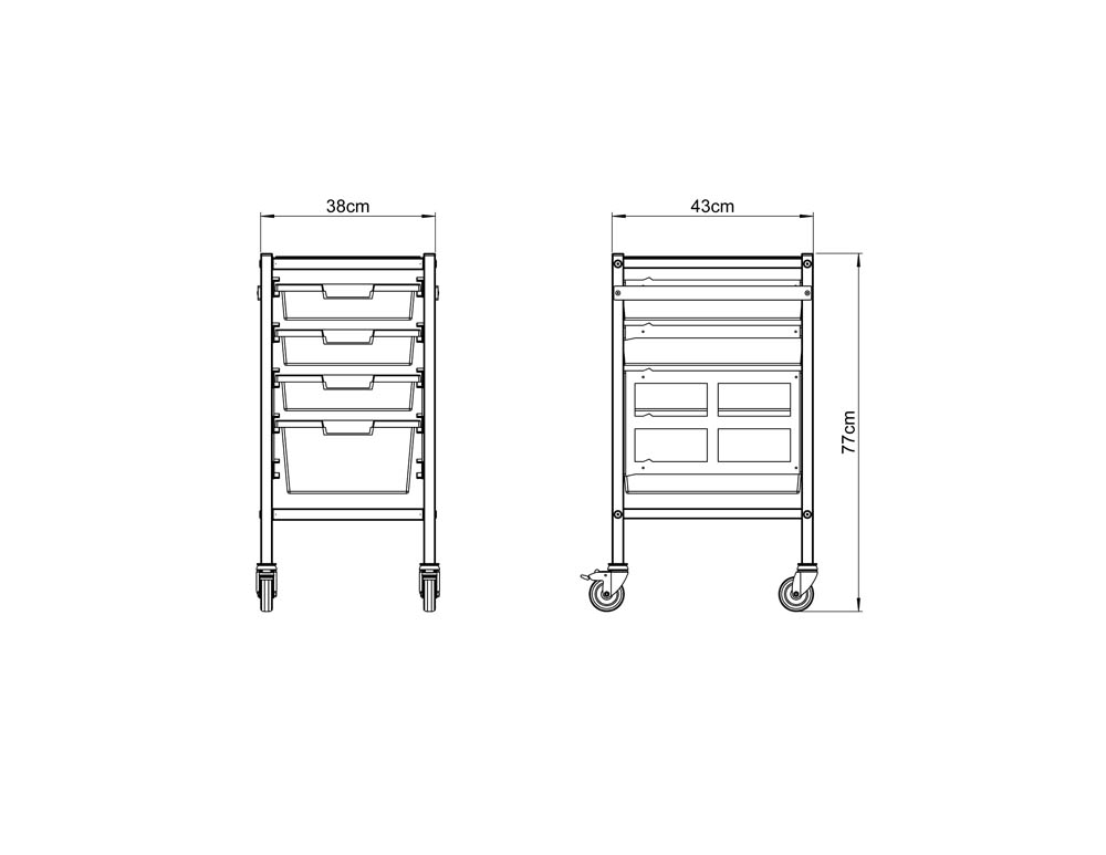 Available in A3 or A4 tray depths, allowing you to configure the trolley to suit your specific clinical workflow and storage requirements.