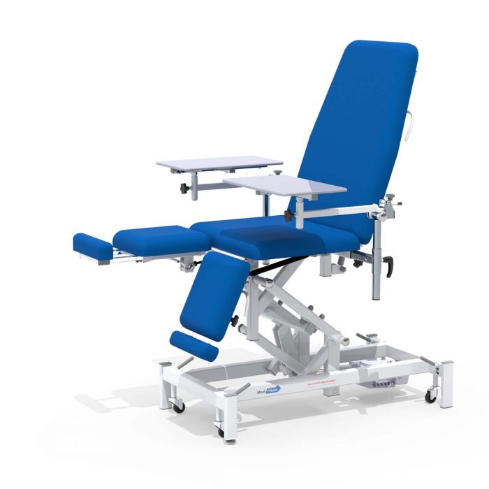 Experience unparalleled versatility and durability with the Medi-Plinth Treatment/Plaster Chair, designed to meet the demands of modern healthcare practices. Ergonomically engineered with high-quality materials, this chair provides a reliable platform for a variety of medical treatments and procedures, including plaster application. The ABS plastic side tables provide a smooth and easily cleaned surface to work on that can be dropped down or removed when not required. NHS approved and infection control friendly it ensures effortless usability for a seamless healthcare experience.